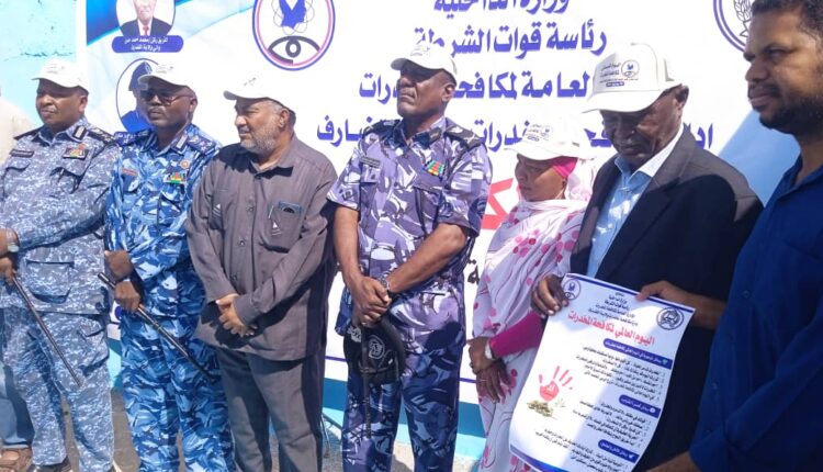 بحضور رسمي وشعبي واسع يؤكد أهمية التوعية والشراكة المجتمعية في التصدي لآفة المخدرات وفي أجواء من الالتزام الوطني والتعاون المجتمعي دشّنت اليوم ولاية القضارف فعاليات الاحتفال باليوم العالمي لمكافحة المخدرات في فعالية رسمية رفيعة المستوى شهدت حضور وزير الصحة بولاية القضارف الدكتور أحمد الأمين ومدير شرطة الولاية اللواء شرطة عصام الدين محجوب محمد أحمد إلى جانب عدد من السادة مدراء الدوائر ومدراء الإدارات العامة والمتخصصة وممثلي المنظمات والوزارات ولفيف من قيادات الإدارات الأهلية.