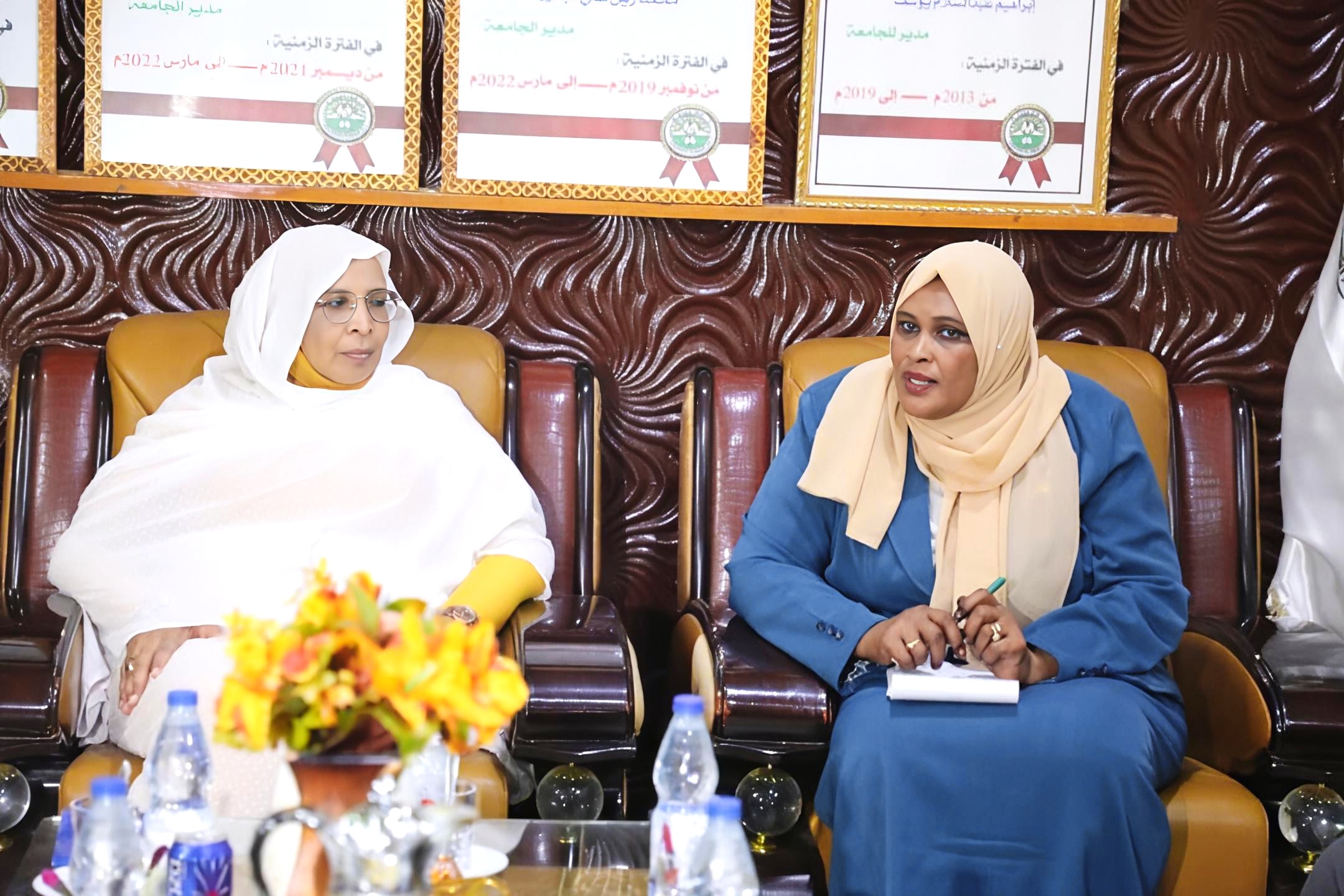 وقدمت البروفيسور إبتسام الطيب الجاك مديرة الجامعة تقريراً مفصلاً عن الجامعة والمعوقات والتحديات التي تواجهها.