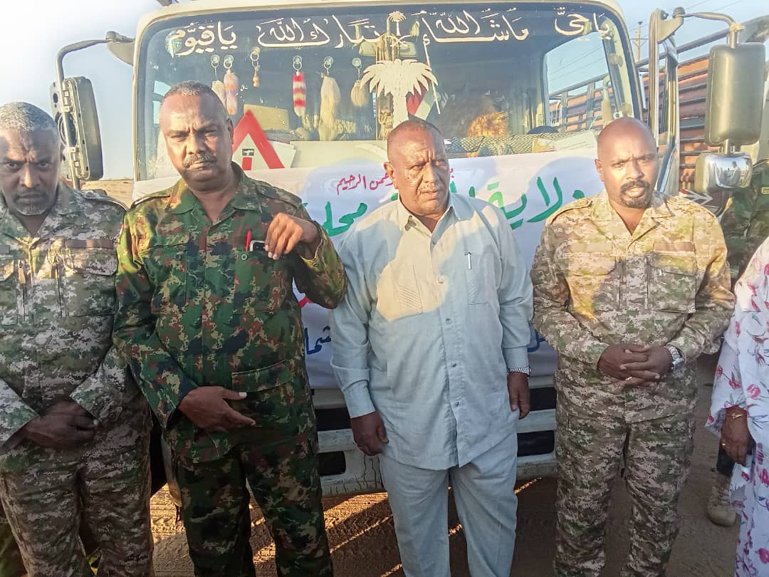 والي الجزيرة يسلم قافلة الولاية الغذائية للنازحين من الفاشر بمعسكر العفاض بالشمالية