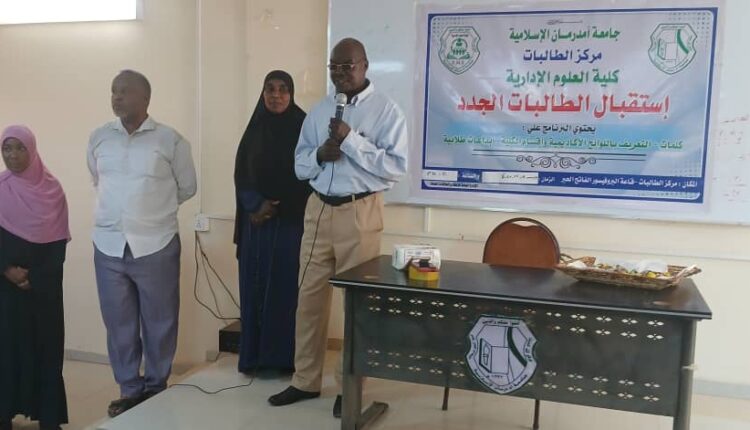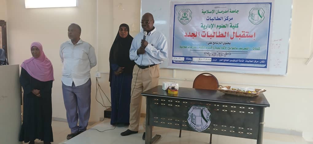اقامت كلية العلوم الإدارية جامعة أم درمان الإسلامية بقاعة البروفيسور الفاتح الحبر عمر أحمد مدير الجامعة بمركز الطالبات اليوم الخميس ١١ ديسمبر ٢٠٢٥م احتفالاً استقبلت فيه الطالبات الجدد بحضور دكتور إسماعيل عبدالله آدم نائب عميد الكلية ود.هاجر عثمان نائب العميد ود.حرم مقبول مدير الشؤون الإدارية ممثلة إدارة مركز الطالبات ود.هويدا حسين نائب أمين الشؤون العلمية ود.عائشة شريف نائب عميد شؤون الطلاب وأ.محاسن مراد مدير التنسيق والمتابعة ومسجلي الكلية وعدد من منسوبي الكلية.