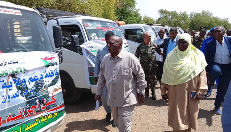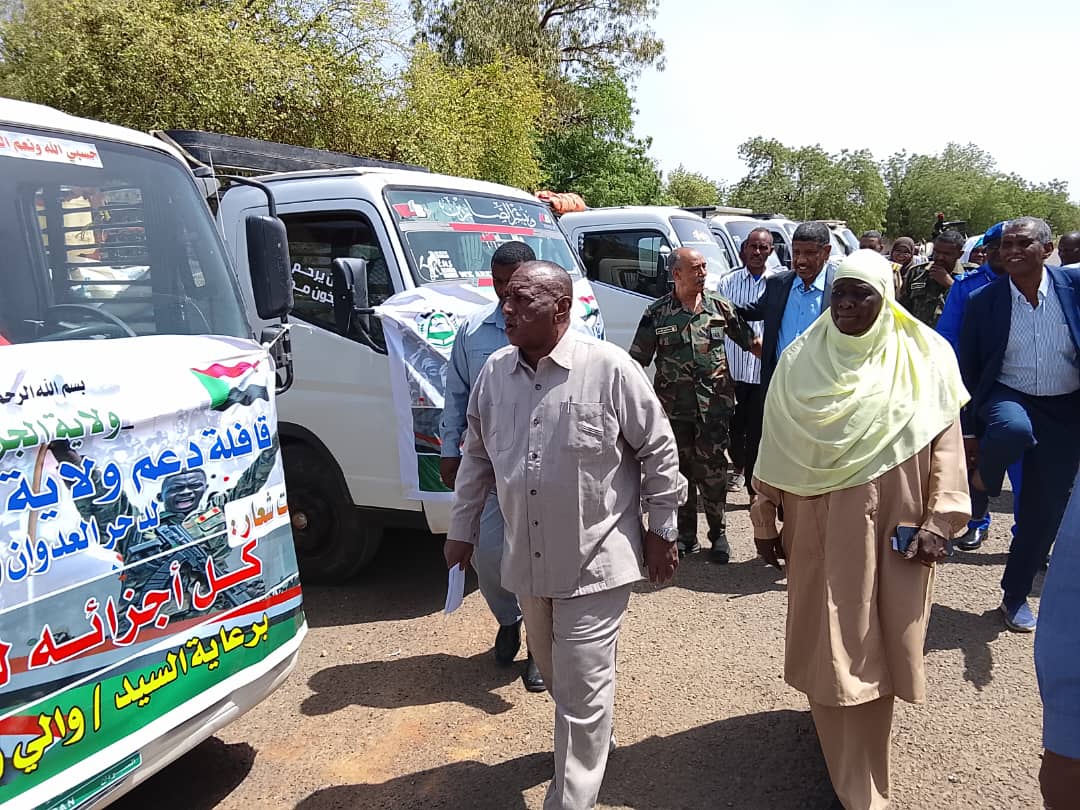 فيما أعلن اللواء شرطة عبد الإله علي أحمد مدير شرطة الولاية أن القافلة محملة بالمواد الغذائية والدوائية دعماً لأهلنا في النيل الأزرق .
