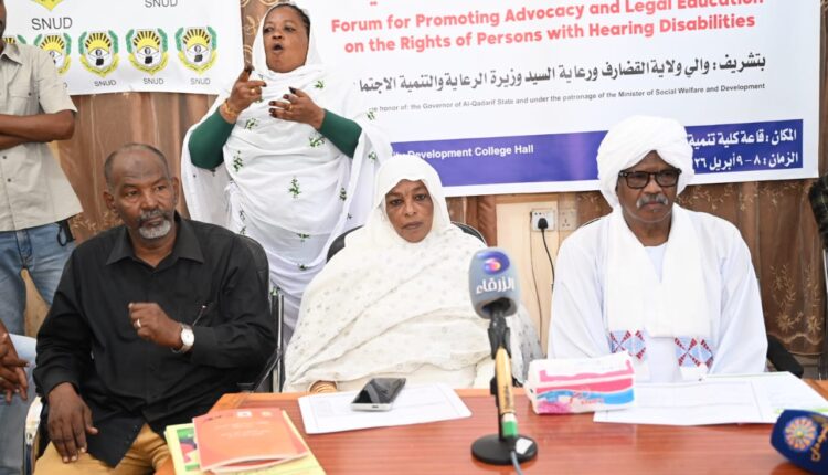 وأشاد الوالي لدى افتتاحه ملتقى تعزيز المناصرة والتثقيف القانوني لحقوق الأشخاص ذوي الإعاقة السمعية بمستوى التنسيق بين اتحادات الصم من عشر ولايات، داعياً إلى تبني مشروعات طموحة تسهم في رفع القدرات الاقتصادية والاجتماعية وتوسيع المشاركة في الإنتاج.