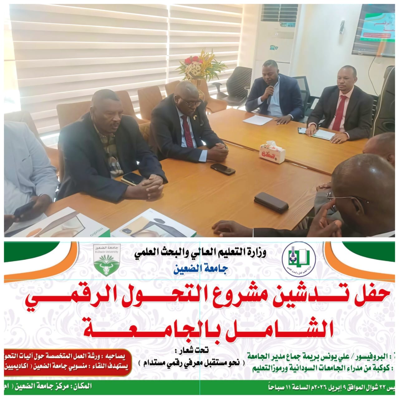 من جانبه، أوضح مدير جامعة الضعين البروفيسور علي يونس بريمة أن المشروع يمثل بداية حقيقية لرقمنة الخدمات الجامعية، مبيناً أن التحول الرقمي سيسهم في تحسين بيئة التعلم، وتبسيط الإجراءات الإدارية، وتعزيز البحث العلمي من خلال إتاحة الموارد الإلكترونية للطلاب والأساتذة.